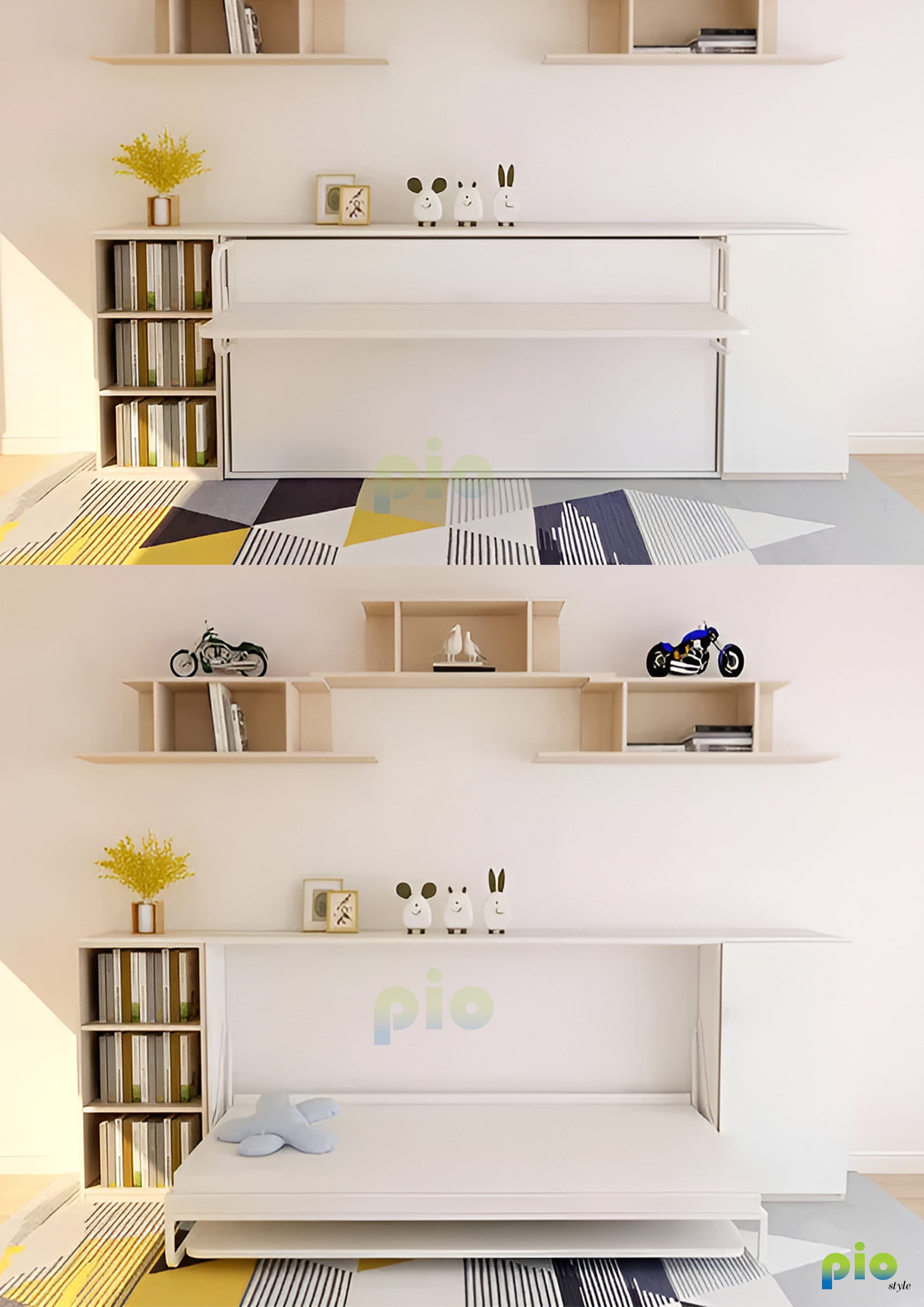 • Consistent Level Rotation: When the bed is flipped down, the table transition into bed support legs, rotating in tandem at the same level.