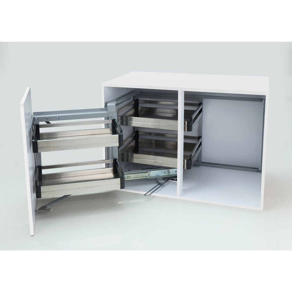 Experience effortless and quiet storage with our Corner Rack. This two-tier solution offers soft opening and closing, ensuring ease and tranquility in your kitchen organization.