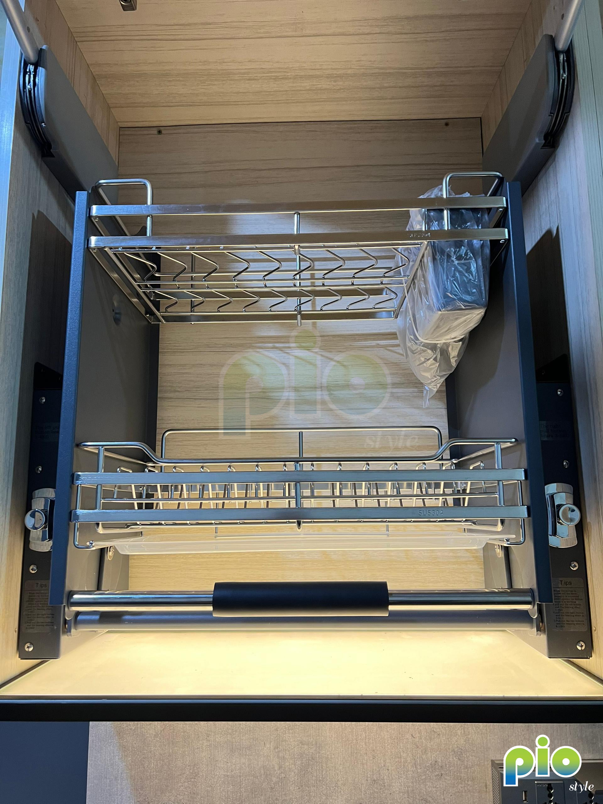 Efficiently organize your dishes and kitchenware with our 304 Stainless Steel Dish Rack Top-Hung Dual-Tier Organizer – a versatile storage solution. Effortlessly pull down and push back with the handle, complemented by a soft-close mechanism. Elevate your organization effortlessly.