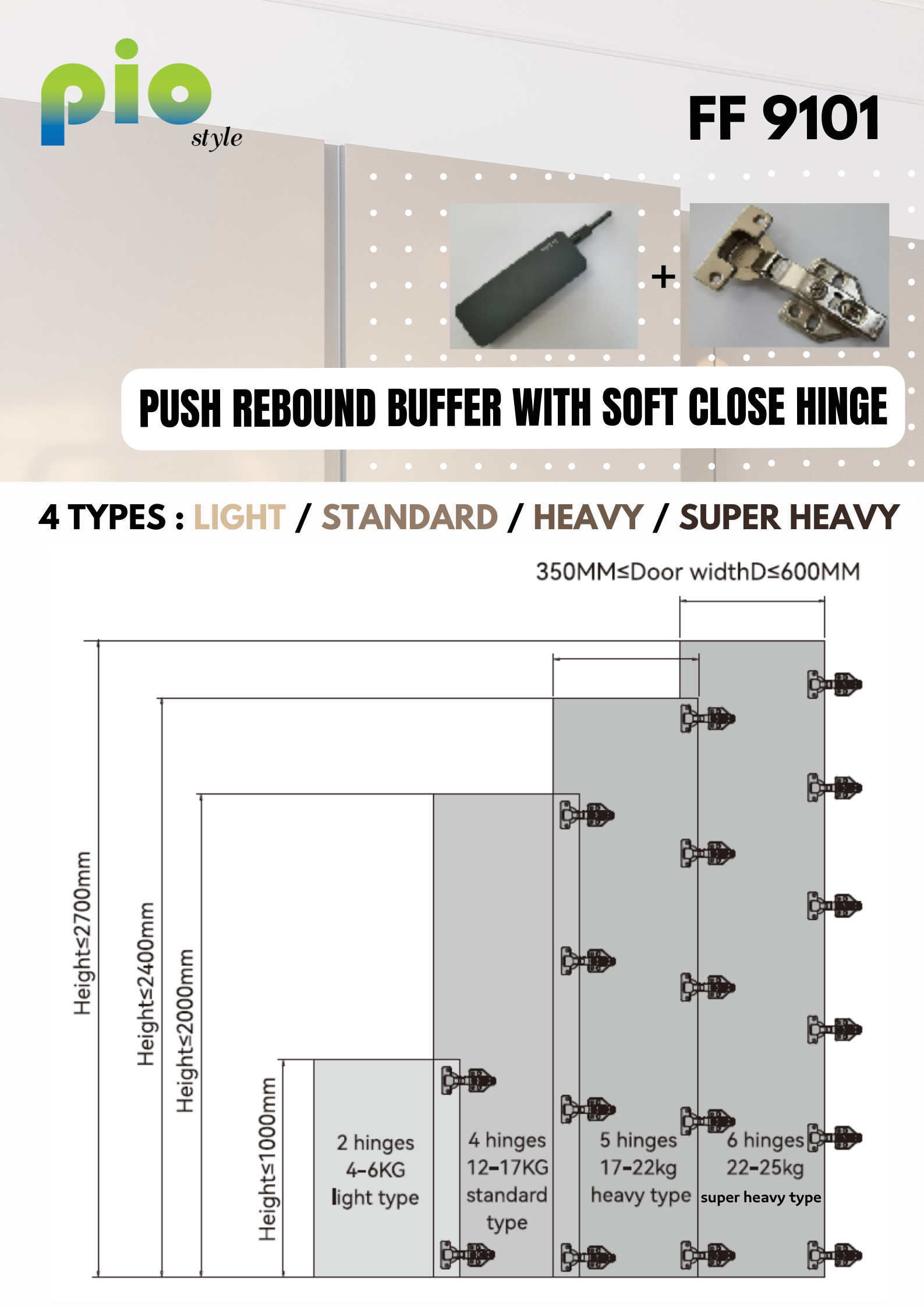 FF9101-HTDG 17-22kg + 5 Soft Close Hinges