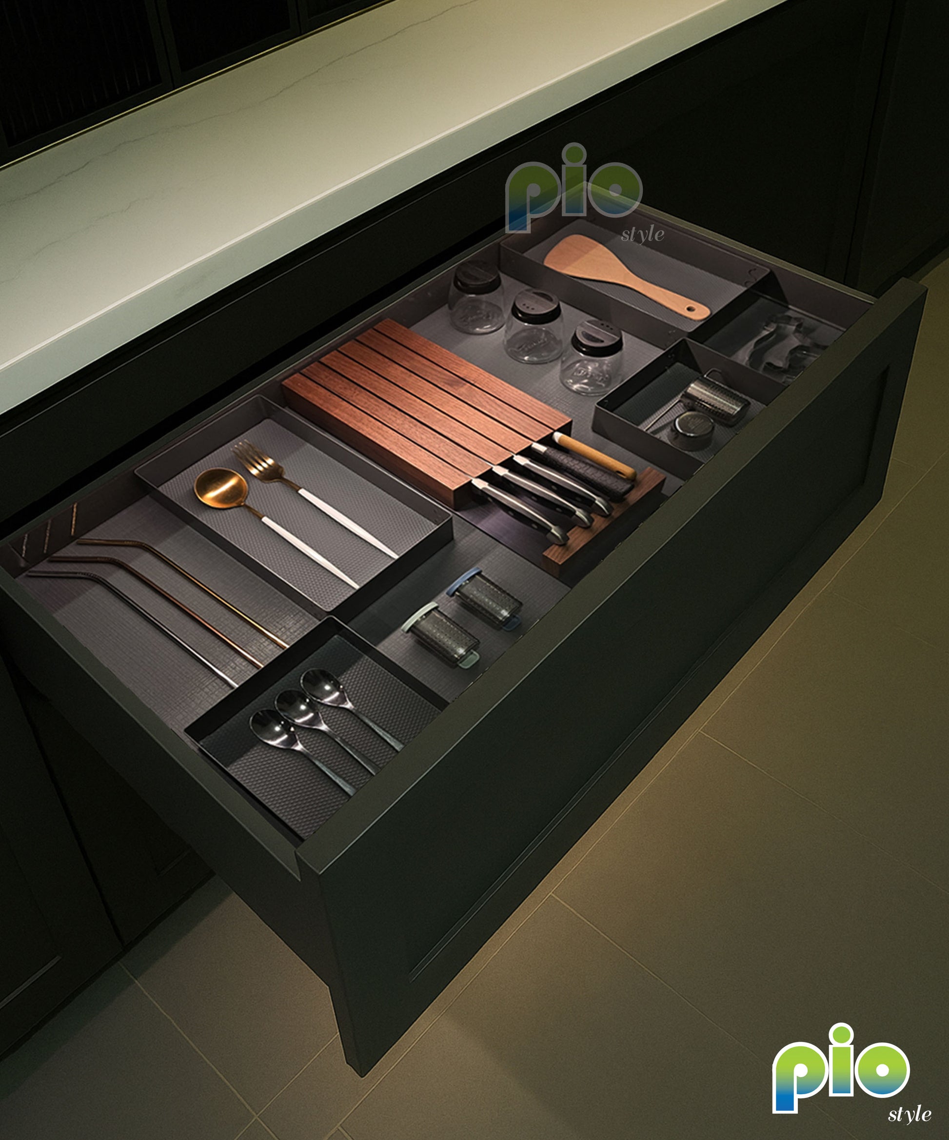 • 内置抽屉实用性:专为高柜或任何开门厨柜里可用空间而设计。